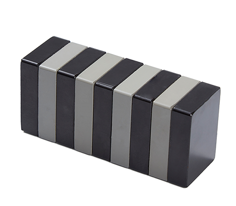 Halbach 陣列通過(guò)特定方式排列的永久磁體,可以在一側(cè)增強(qiáng)磁場(chǎng),另一側(cè)則弱化甚至消除磁場(chǎng)。這種特性使得它在需要定向磁場(chǎng)的應(yīng)用中非常有用。Halbach 陣列可以實(shí)現(xiàn)比普通磁體更高的磁場(chǎng)強(qiáng)度和效率。